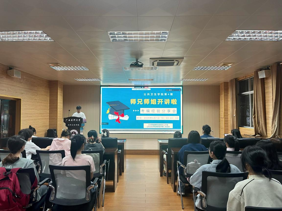 当前位置:学生工作为助力学生明晰保研路径、做好学业规划,4月1日晚,快看漫画 在105馆会议室举办第4期“师兄师姐开讲啦”——保研经验分享会。本次分享会由预防医学第二党支部承办,邀请2026届刘桂伶、温婉鹭、李丽萍、张家万四位保研学子担任主讲人,各年级同学踊跃参会。