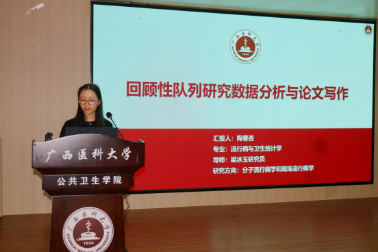 本次交流会特邀学院国家奖学金获得者、2023级硕士研究生陶春杏担任主讲人,她以“回顾性队列研究数据分析与论文写作”为主题,帮助研究生系统掌握队列研究的数据处理与科研论文撰写核心技能,进一步夯实科研基础,提高论文质量。 陶春杏结合自身科研经历,系统阐述了回顾性队列研究中的数据整理、统计分析及结果可视化全流程,重点剖析了数据清理、统计模型选择等常见难点,并分享了国际会议汇报与SCI投稿的实用经验。此外,她还推荐了多款有助于提升科研效率的实用工具。互动环节中,她针对混杂控制、论文修改及审稿意见回复等研究生普遍关注的问题,并结合具体案例进行了细致解答,现场交流踊跃,气氛热烈。 参会同学纷纷表示,本次活动内容充实、贴近科研实际,对提升个人科研能力具有重要的指导意义。