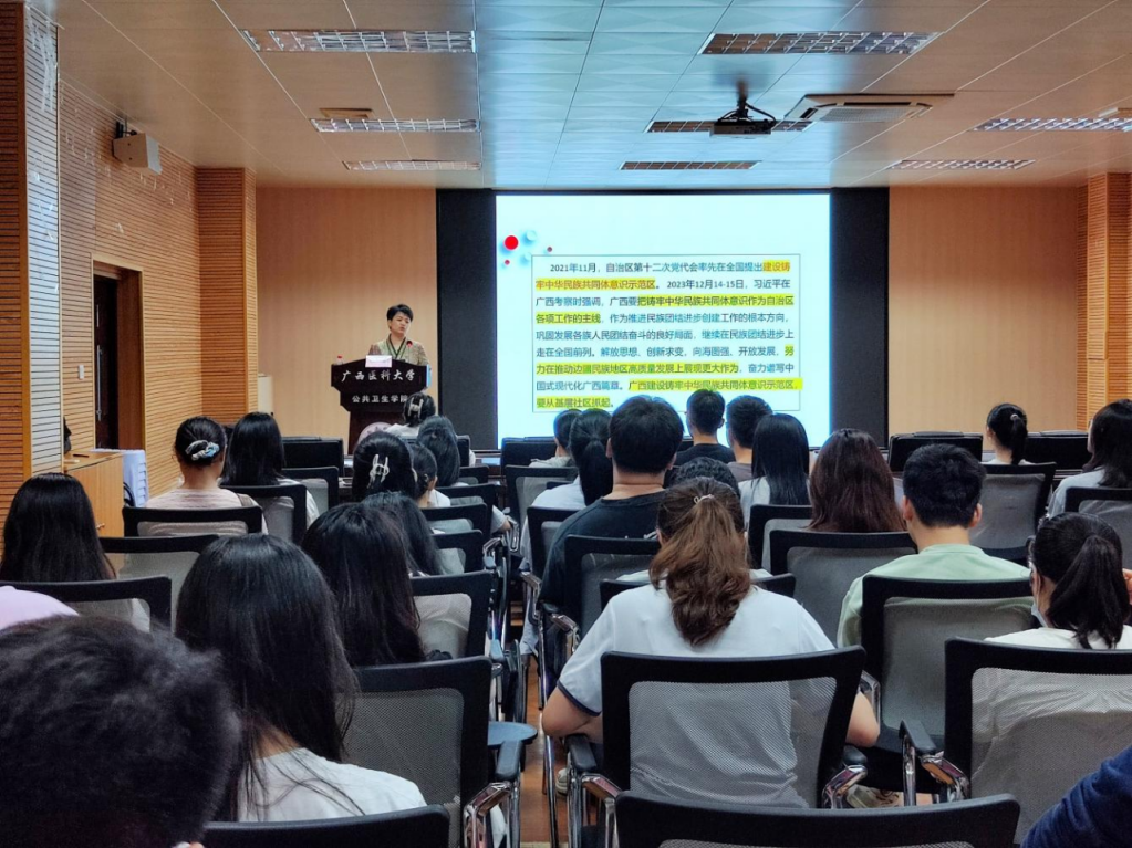 为持续推动铸牢中华民族共同体意识示范区建设走深走实,有形有感有效推进民族团结进步教育,4月16日下午,快看漫画 在105馆一楼学术报告厅举办专题学术交流活动。本次活动特邀广西社会科学院民族研究所所长、自治区党委讲师团特聘专家覃娟研究员作专题分享。学院党委书记邹云锋主持活动,各党支部支委及师生代表共同到场学习交流。